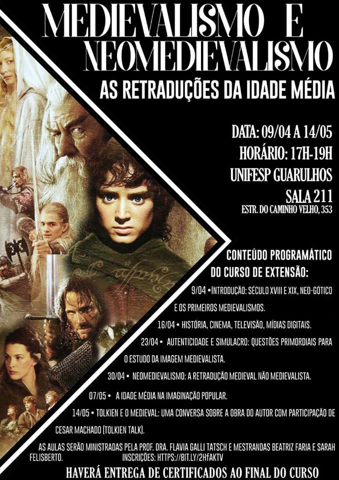 O LEME-UNIFESP convida a todos para o curso de extensão "Medievalismo e Neomedievalismo: as retraduções da Idade Média", que acontecerá entre os dias 09/04 e 14/05, no campus Guarulhos.